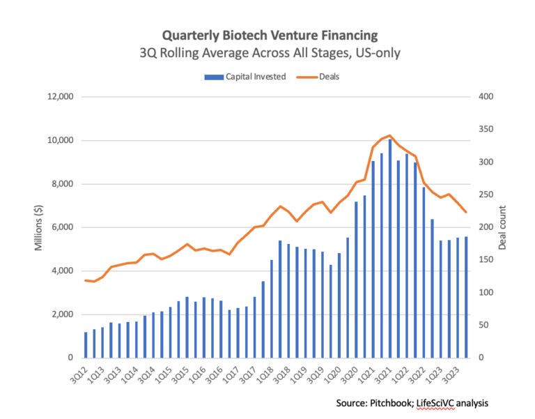 Biotech Venture Ecosystem: Quick Health Check [Bruce Booth, Life Sci VC, January 2024]