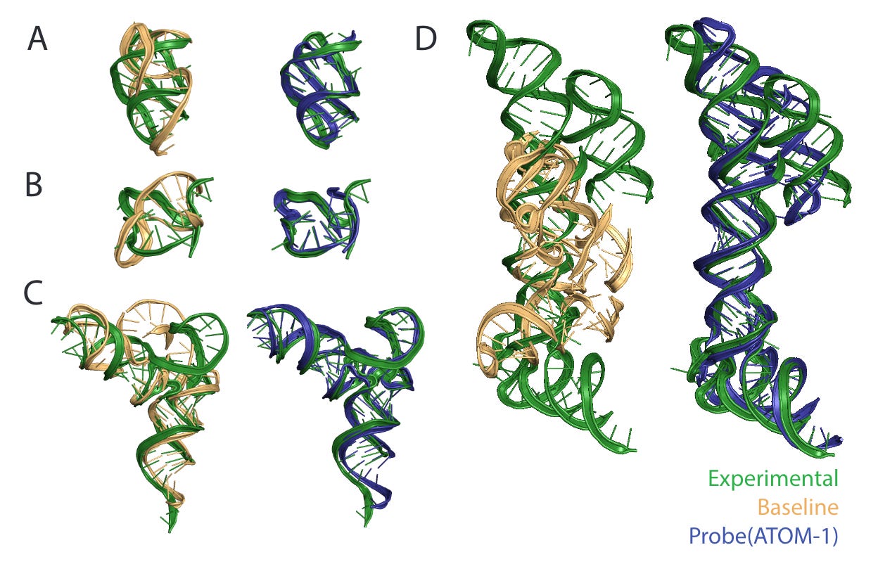 Using probe networks, which can take embeddings from ATOM-1 as input, the authors demonstrated that the model outperforms popular models when predicting tertiary RNA structures and is highly accurate when predicting secondary RNA structures.