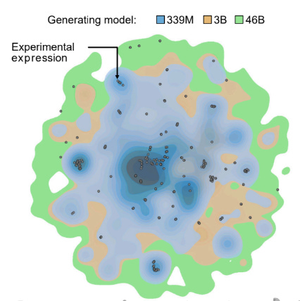 The team systematically evaluated the impact of scale both in silico and in the wet lab: they generated millions of sequences across scales, applied rigorous quality filters, and used split‐GFP assays to measure soluble expression for clusters of natural and out‐of‐distribution proteins. Although models of all scales had comparable rates of designing proteins that express, the 46B model consistently produced higher expressing proteins. They further demonstrated that larger ProGen3 models also respond more strongly to alignment with experimental fitness and stability datasets. Interestingly, they corroborate previous understanding from Weinstein et al. 2022 that larger models with better understanding of natural protein distribution are not necessarily better zero-shot fitness predictors, motivating the use of model alignment.